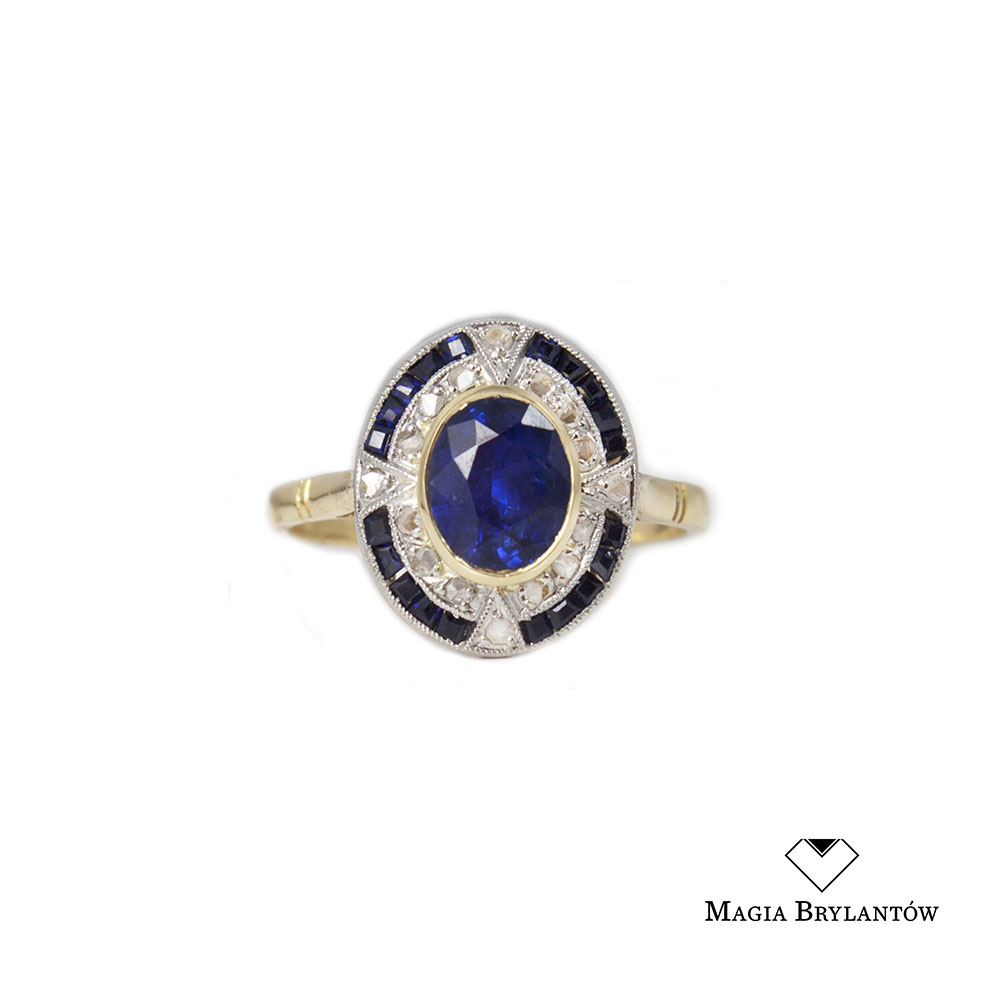 Sapphire 1.60ct, Side Sapphires 0.20ct, Rosecut Diamonds 0.12ct Si-P/H-K