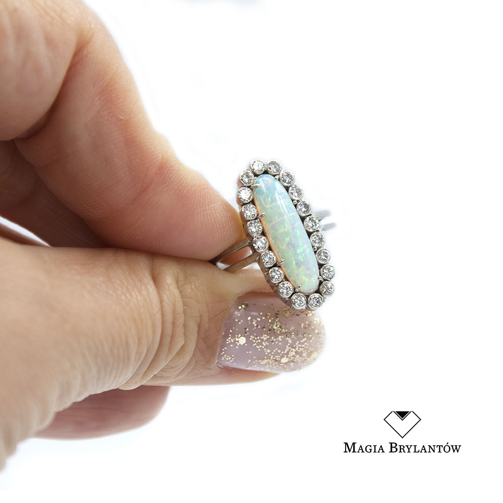 Kamienie: Opal 1.35ct, Brylanty 0.60ct Vs/G-H
